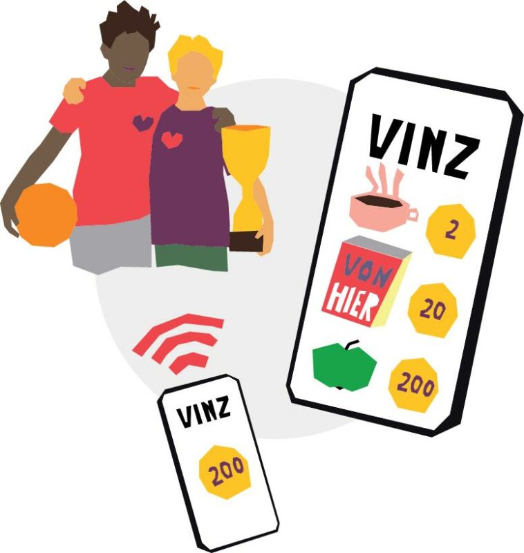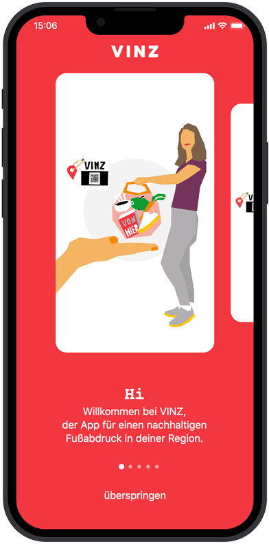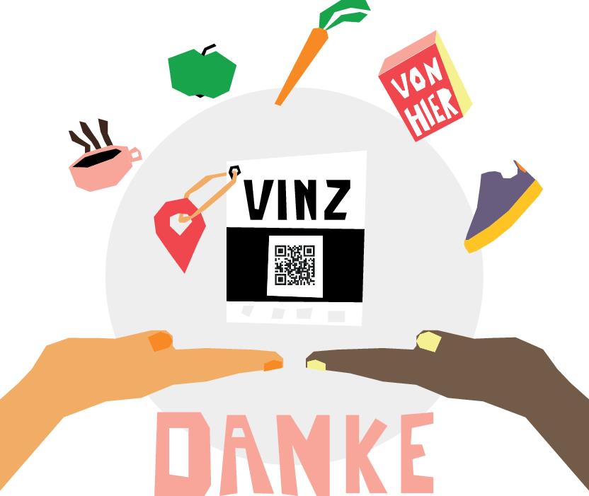 Die multifunktionale VINZ App ist ein interaktives Werkzeug, das regionales Handeln belohnt und fördert. Mit Hilfe der integrierten Scan-Funktion sammeln Nutzer Treuepunkte – sogenannte VINZ (kurz VNZ). Das angebundene Onlineportal enthält darüber hinaus einen Shop mit regionalen Produkten, Kundenkonten zur Verwaltung der gesammelten VINZ sowie ein Händler-Dashboard.