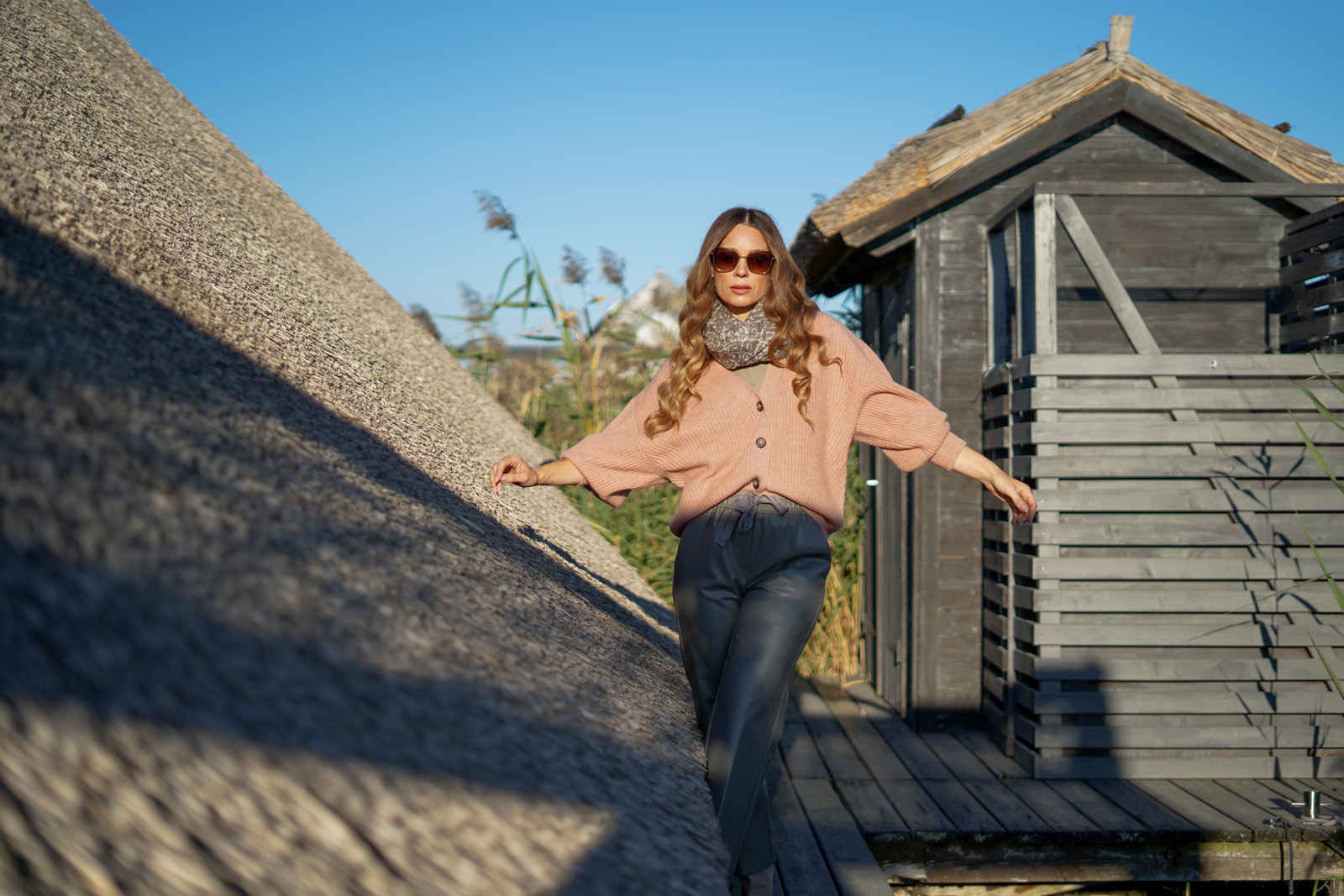 Obenrum strukturiert und wollig, unten glatt und glänzend – eine absolut stylische Kombination, bei der Gegensätze anziehen!