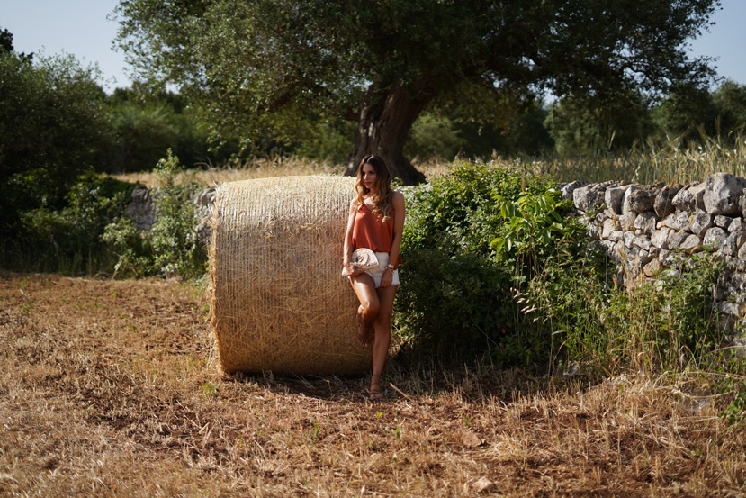 Viel Sonne auf der Haut erlaubt dieses luftig-leichte Top, kombiniert zu den Headlinern der Sommergarderobe: Riemchensandalen und eine kurze Denim-Short mit dezenten Fransen.