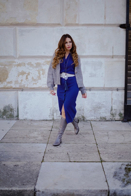 … gehört dieses Rippstrick-Kleid. Wie sehr – obliegt der Trägerin. Genial dazu: Eine kuschelige Grobstick-Weste mit Ballonarm, Glattlederstiefel und das eine oder andere Accessoire …