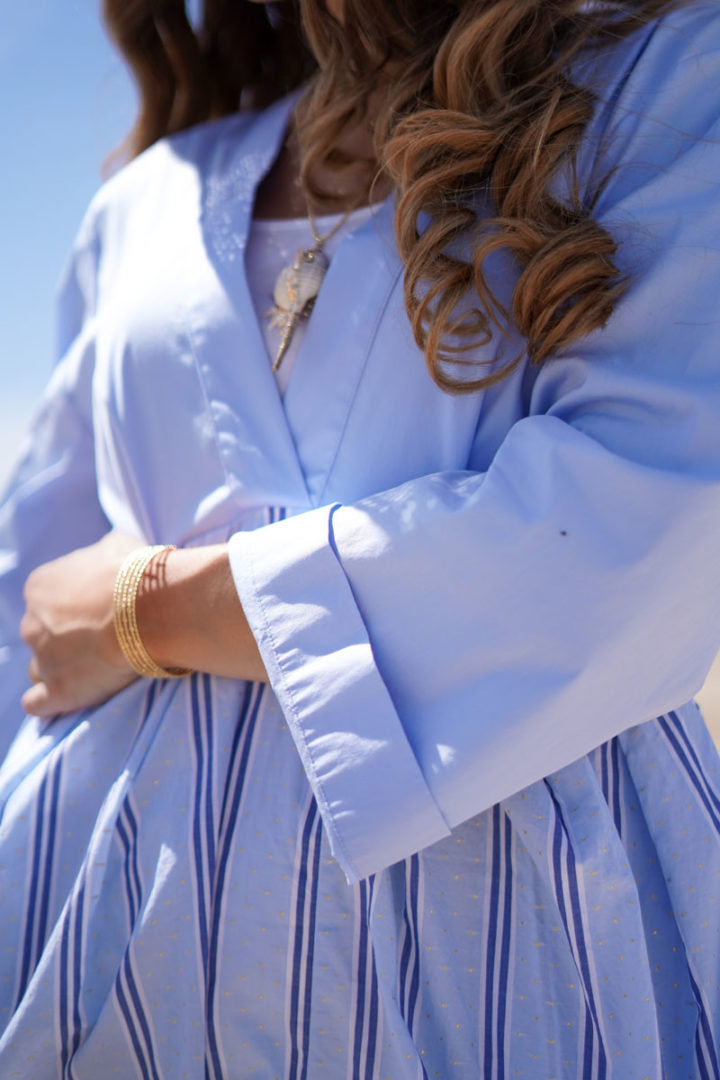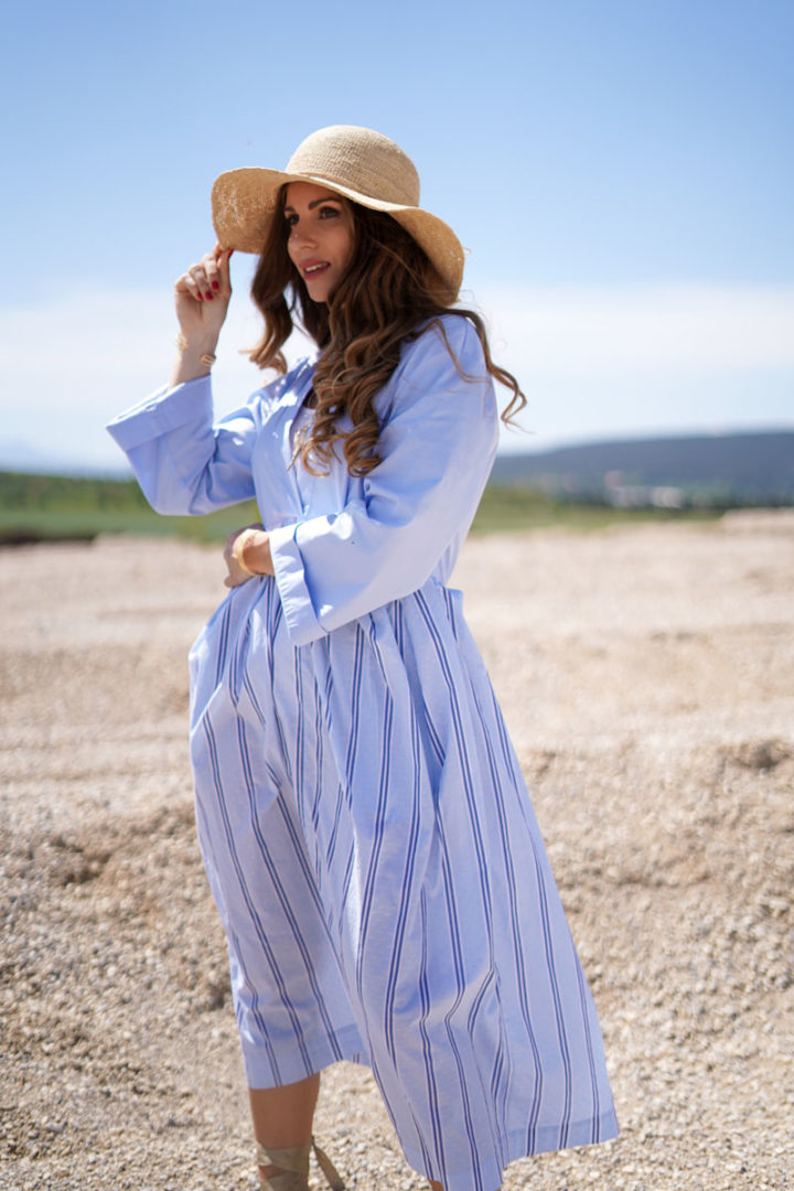 Dieses in Italien handgenähte Kimono-Kleid von Aglini ist wie eine Klimaanlage: Es fließt an der Trägerin hinab, lässt jede noch so zarte Brise an die Haut und vermittelt Sommer-Feeling in Reinkultur. Und was könnte besser dazu passen als die Espadrilles des (natürlich) spanischen Labels Castañer.