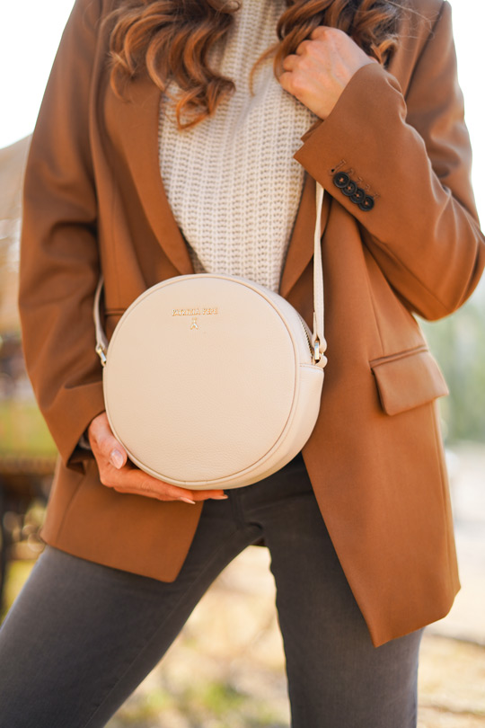 Der Oversize–Blazer ist aus einer Wollmischung und von Drykorn, einer Marke für Individualisten, die es gerne lässig und stylisch zugleich haben. Die AG Jeans überzeugt optisch, aber auch mit ihren inneren Werten: Sie wurde nachhaltig produziert. Nicht nur an Bad Hair Days passt die Wollhaube perfekt zum Look. Runde Sache: die trendige Umhängetasche.