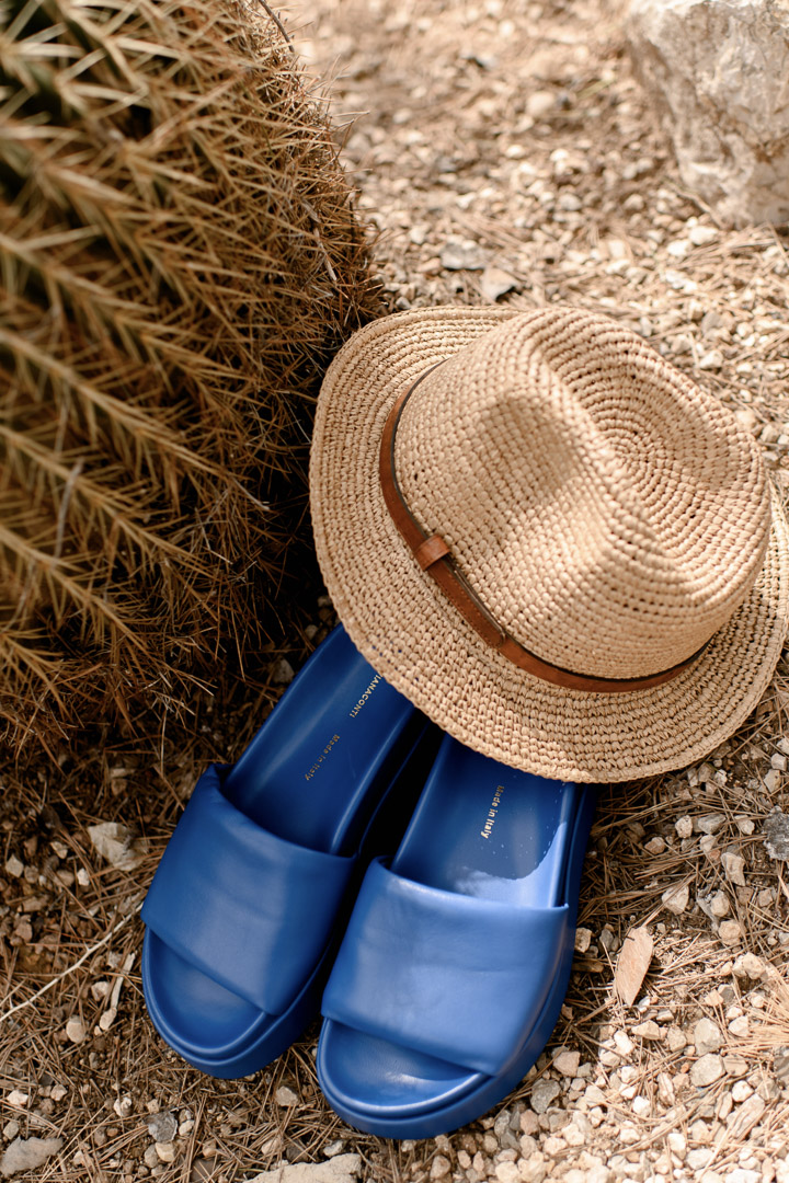 Als perfekte Ergänzung zum Look haben wir gemütliche Plateau-Pantoletten gewählt. Sie verleihen dem Outfit eine lässige Note und sind dabei bequem zu tragen. Ob am Strand oder bei einem Spaziergang entlang der Küste von Mallorca, mit diesen Schuhen machen Sie überall eine gute Figur.