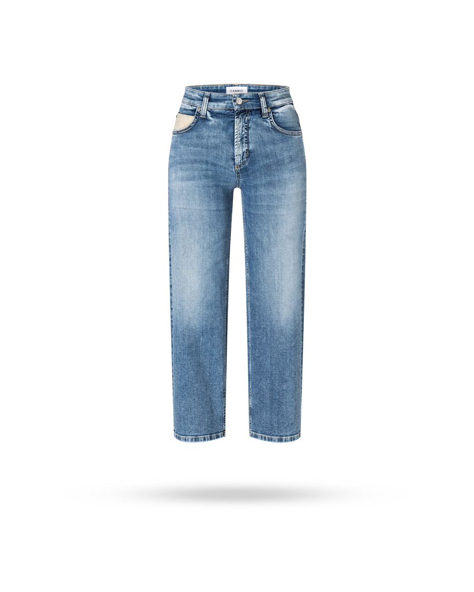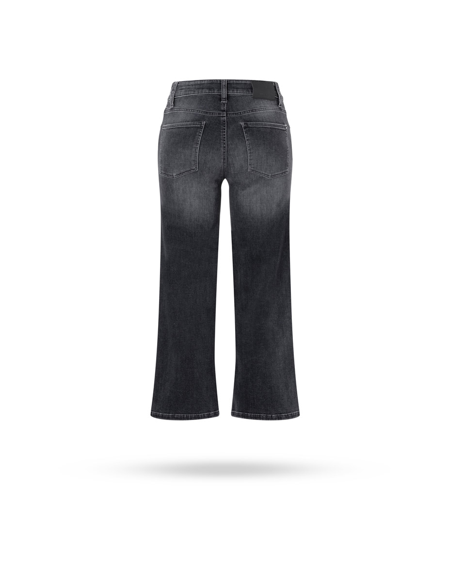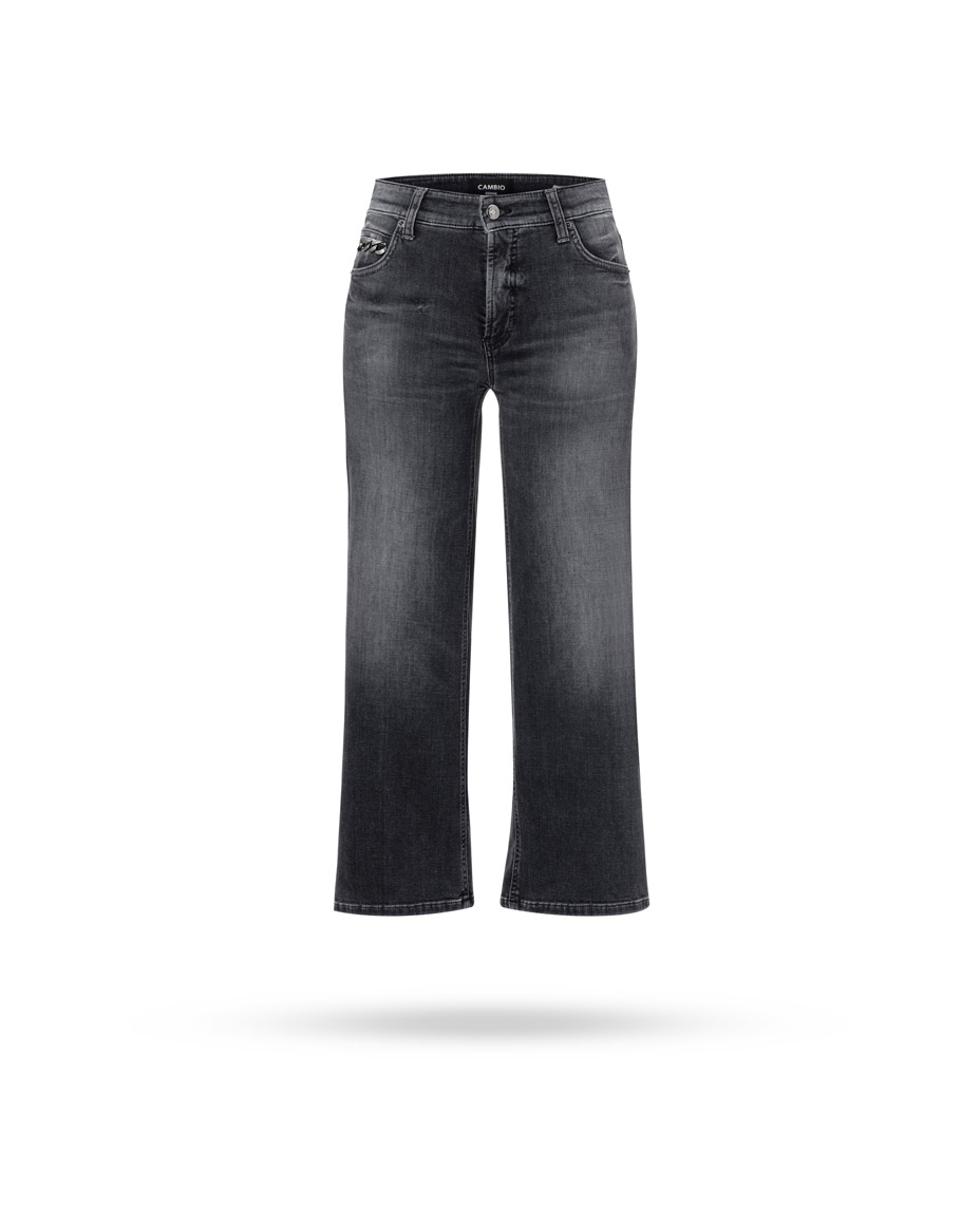| Passform & Maße | mid-rise, verkürztes weites Bein, silberne Kette an der Eingriffstasche |