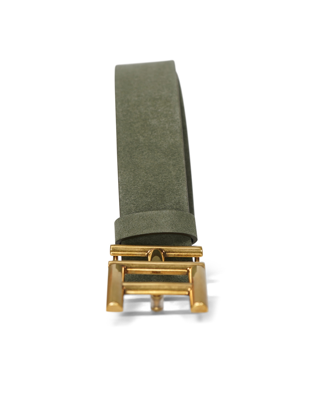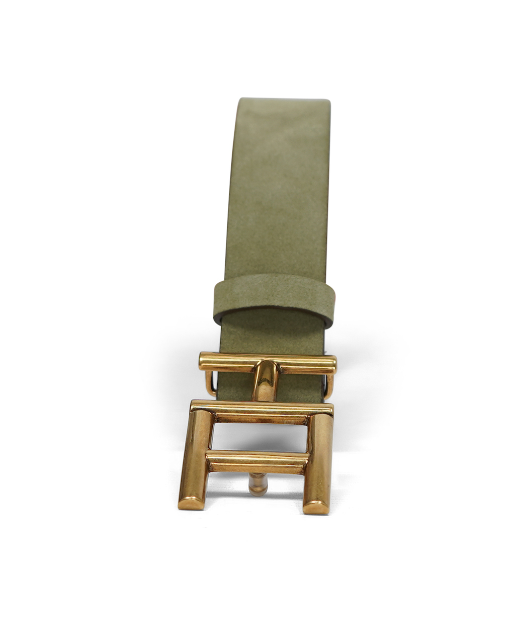 | Passform & Maße | Breite 3,5 cm, Logoschnalle in Gold |