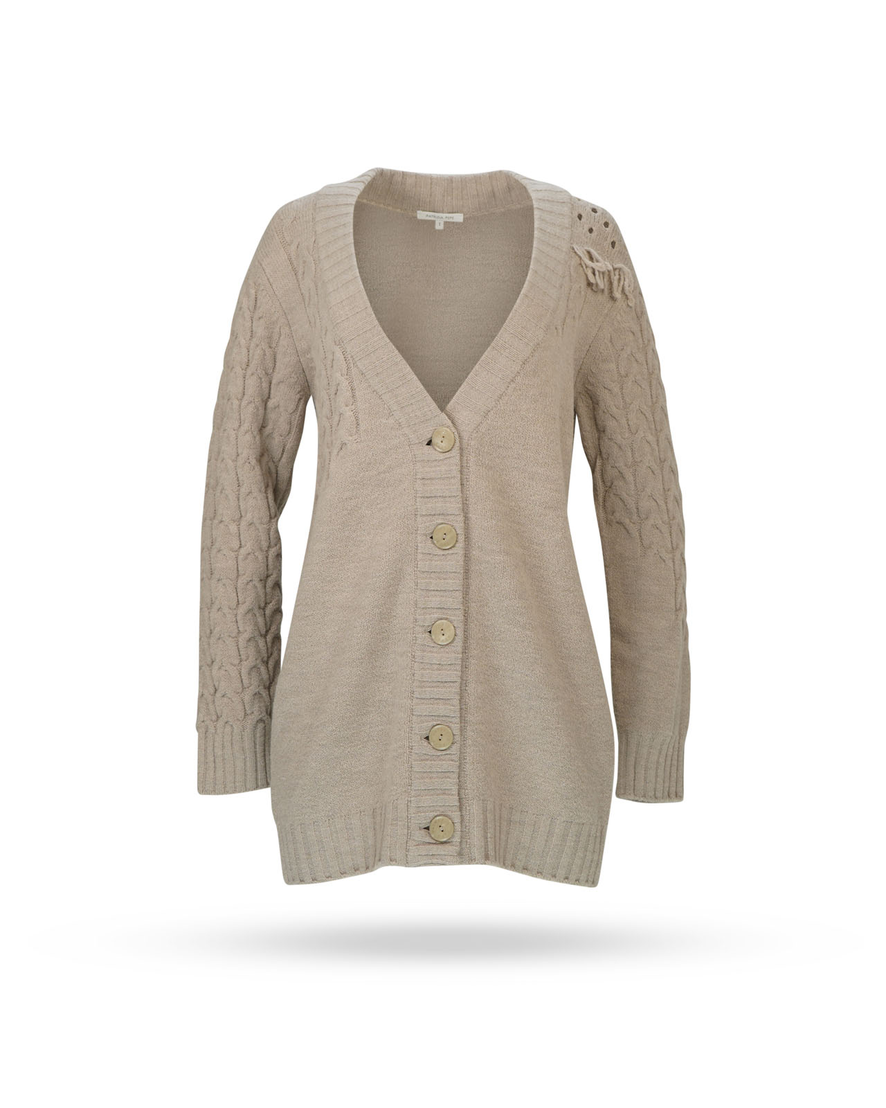 | Passform & Maße | loose fit, Zopfmuster, Länge reicht bis über den Po |