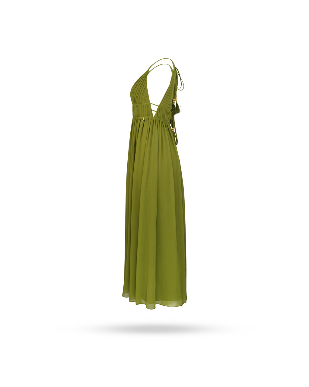 | Passform & Maße | tailliert, tiefer V-Ausschnitt vorne und auf der Rückseite. Zipp zum Schließen, Bänder zum Binden |