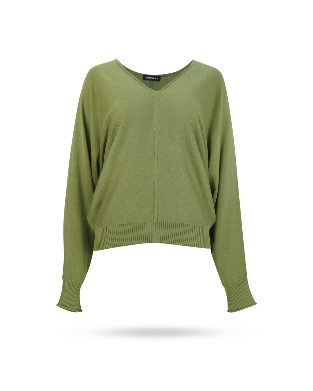 | Passform & Maße | loose-fit, V-Ausschnitt, Fledermausarm, Mittelnaht |